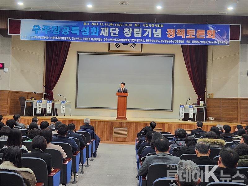 [사천=투데이K뉴스]방태준 기자 = 우주항공청 개청을 견인하고 지역 맞춤형 우주항공산업클러스터 조성을 위한 우주항공특성화재단이 창립했다.우주항공특성화재단은 21일 경남 사천시청 대강당에서 재단 창립식을 갖고 이를 기념하는 정책토론회를 개최했다고 밝혔다. 우주항공특성화재단과 한국공공컨설팅학회, 경남사천시, 하영제 국회의원