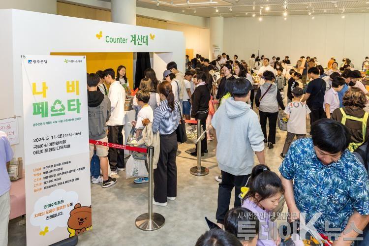[투데이K뉴스]윤진성 기자 =광주은행(은행장 고병일)은 지난 11일, 국립아시아문화전당 어린이문화원에서 (재)아름다운가게와 함께 에코플리마켓 ‘나비페스타’를 성황리에 개최했다고 밝혔다. ‘나비(나눔+비움)페스타’는 ‘나눔을 위한 비움 실천’이라는 뜻을 담아 광주은행이 새롭게 펼치는 ESG캠페인 활동의 일환으로, 지구의