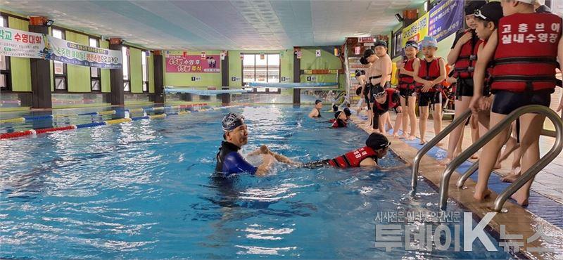 고흥봉래초, 고흥 브이실내수영장에서 생존수영 교육 참여