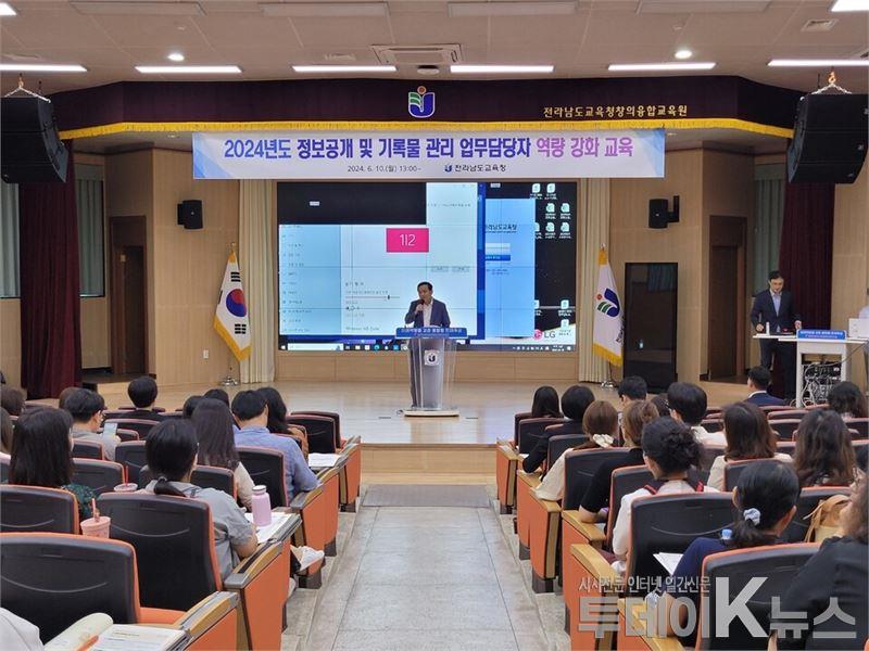 [투데이K뉴스]윤진성 기자 =전라남도교육청은 10일 전라남도교육청창의융합교육원에서 정보공개 및 기록물 관리 업무 역량을 높이기 위한 담당자 교육을 실시했다. 이 교육에는 나주 등 6개 시․군 교육지원청, 직속기관 및 학교의 정보공개 및 기록물 관리 업무담당자 200여 명이 참여했다. 이번 교육은 정보공개 및 기록물
