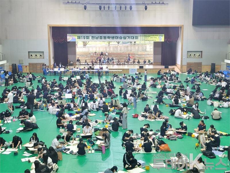 [투데이K뉴스]윤진성 기자 =전라남도교육청은 12일 담양종합체육관에서 ‘제19회 전남중등학생미술실기대회’를 개최했다. 전라남도교육청이 주최하고 전남중등미술교과교육연구회(회장 박경남)가 주관한 이번 행사에는 전남 도내 중·고등학생 700여 명이 참가해 한국화, 서양화, 디자인 및 애니메이션, 조소 등의 분야에서 미술적