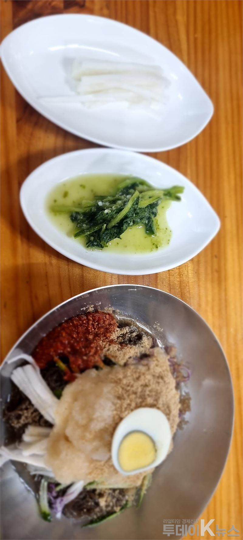 반찬으로 나온 열무김치를 냉면위에 올려서 먹는 맛도 일품이다.