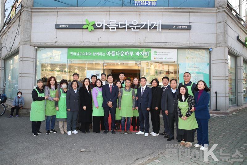 이를 통해, 당일 아름다운가게에서는 도의회로부터 기부받은 물품을 전시·판매하는 바자회가 진행됐으며, 이날 수익금은 전남지역 소외계층 대상 ‘생필품 나눔보따리’ 사업에 사용될 예정이다.