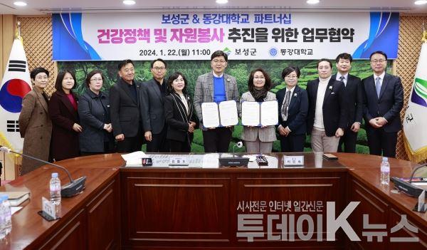 [투데이K뉴스]윤진성 기자 =보성군은 지난 22일 군청 소회의실에서 동강대학교와 찾아가는 보건복지사업 및 자원봉사 활성화를 위한 관·학 협력 업무 협약을 체결했다고 밝혔다.