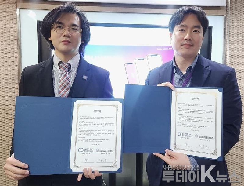 [투데이K뉴스]윤진성 기자 =글로벌 B2B, B2C 인플루언서 전문 기업인 (주)커넥트스페이스 (대표이사 남성화, 하시우)가 (주)바나나러닝 (대표이사 최효준) 지난 27일 실무진 참석하에 협약식을 진행했다.