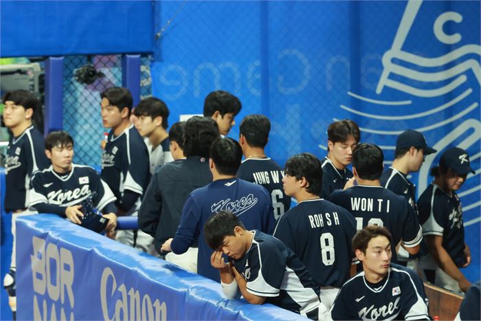 X 2일 중국 저장성 항저우 인근 사오싱 야구·소프트볼 스포츠센터 제1구장에서 열린 2022 항저우 아시안게임 조별리그 B조 대만과 대한민국의 경기가 0-4 대한민국의 패배로 끝났다. 경기 종료 뒤 대한민국 선수들이 더그아웃에서 아쉬운 표정을 짓고 있다./사진=(사오싱[중국]=연합뉴스) 0 0 일간경남 투데이K뉴스 ljhljh20@naver.com 투데이K뉴스의 기사 더보기 저작권자 ⓒ 일간경남, 무단 전재 및 재배포 금지