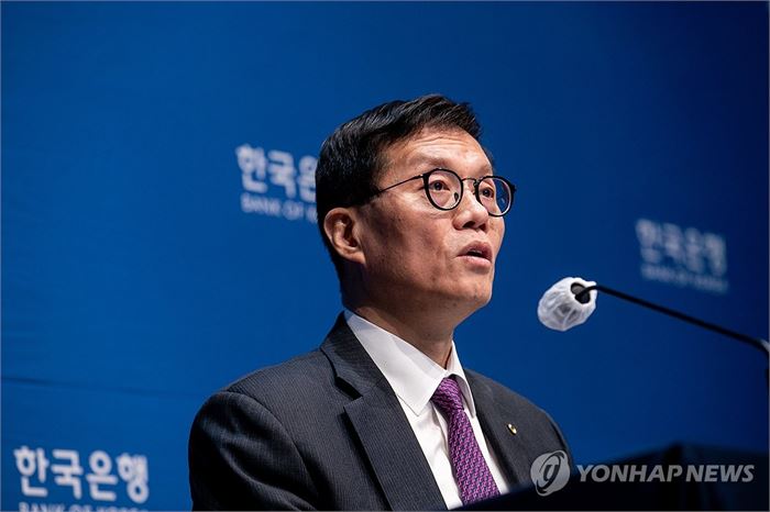 ▲이창용 한국은행 총재가 30일 서울 중구 한국은행에서 열린 통화정책방향 기자간담회에서 취재진의 질문에 답하고 있다./사진스[사진공동취재단]